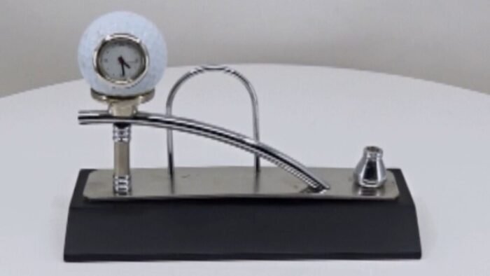 - Golf-inspired design integrating pen holder, memo pad, and clock
