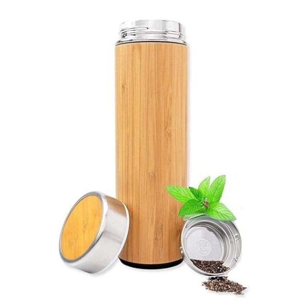 - Eco-Friendly Bamboo Water Bottle made with sustainable bamboo and stainless steel
