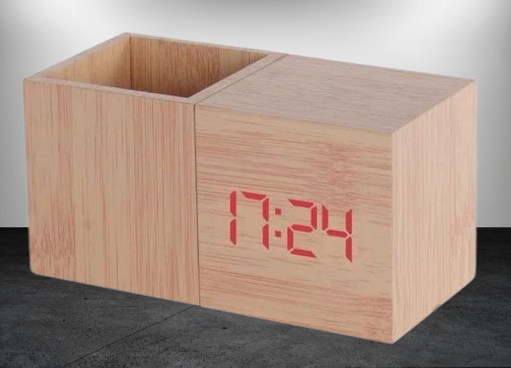 BlockTime: Wooden Table Top with Digital LED Clock & Pen Stand – Stylish Desk Organizer for Modern Workspaces
