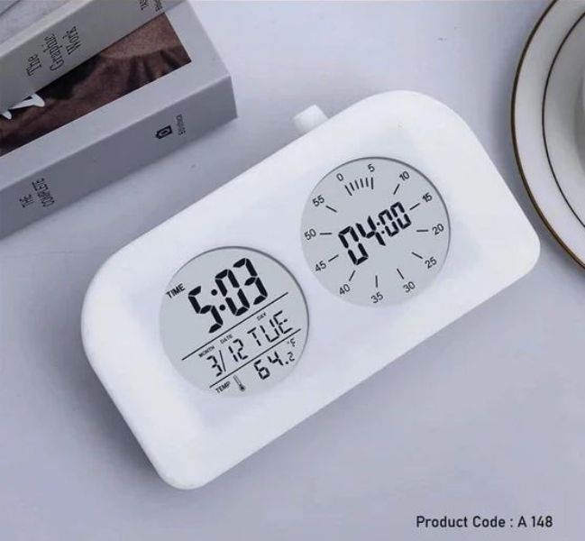 Stay organized and on schedule with the Bubble Table Clock with Double Display, a modern and multifunctional desk clock perfect for offices, study tables, or home workspaces. Combining style and practicality, it provides time, timer, and calendar functions in one compact device.