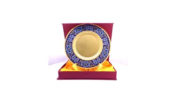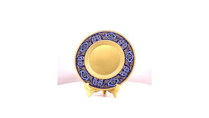 - Ornate gold salver plaque inspired by heritage craftsmanship