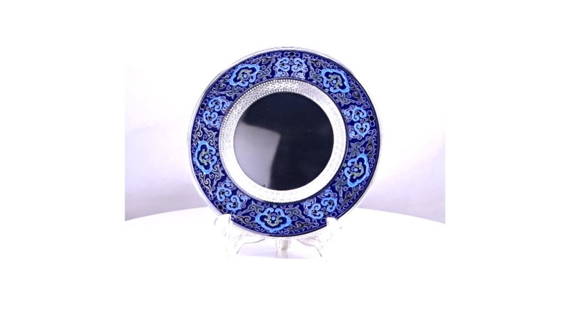 - Ornate silver salver plaque inspired by heritage craftsmanship