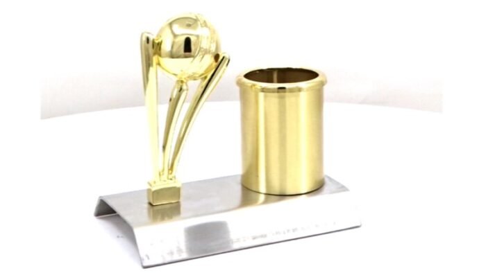 - Combines practical desk utility with trophy-style presentation