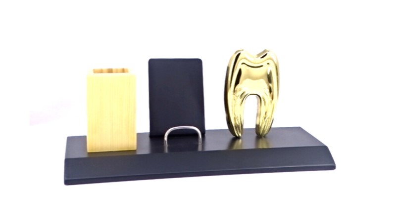 Add personality and purpose to the workspace with the Dental Theme Desk Organiser, a thoughtfully designed desk accessory created especially for dental professionals and clinics. Featuring a sculpted tooth, wooden pen holder, and an integrated phone dock, this organiser helps keep essentials in place while “keeping smiles on schedule.”