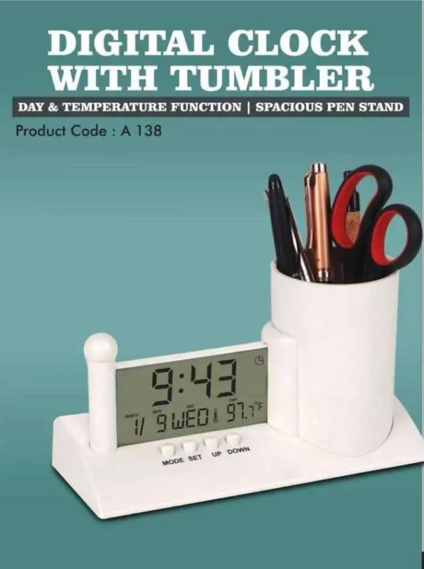 Digital Clock with Tumbler, Pen Stand & Day/Temperature Display