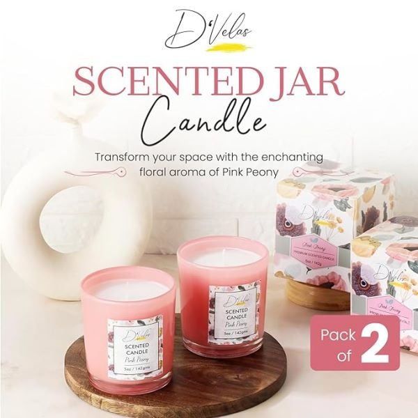 Enhance your living space with the D’Velas™ Pack of 2 Scented Glass Candles, infused with a soothing Pink Peony fragrance to create a calming and elegant ambience. Designed to deliver a modern classic aesthetic, these premium scented candles are ideal for home décor, relaxation, meditation, festivals, and gifting.