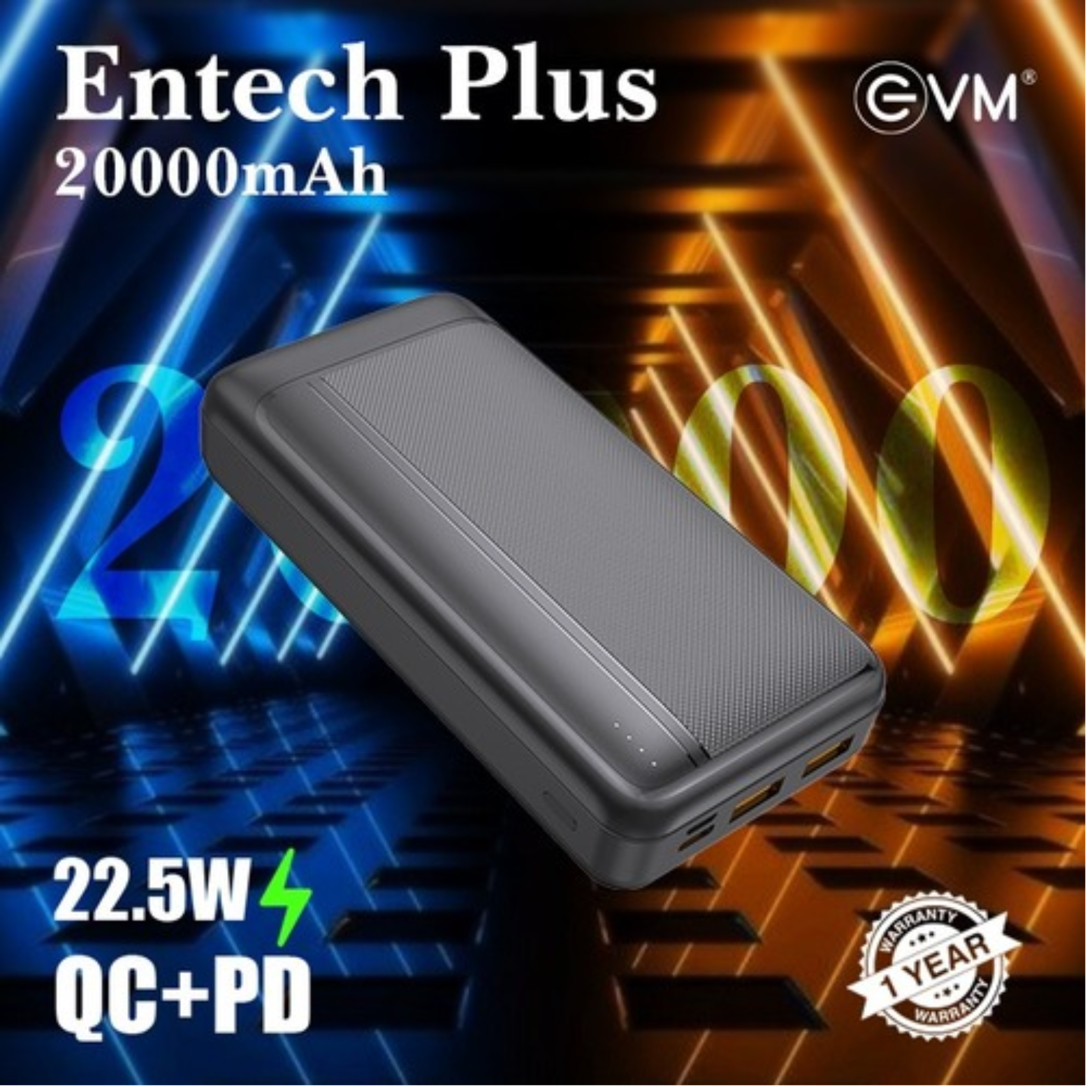 Stay powered all day with the EnTech Plus Power Bank. With a massive 20,000mAh capacity and 22.5W fast charging, it’s designed to charge your devices quickly and efficiently—multiple times over. Perfect for travel, work, or everyday use.