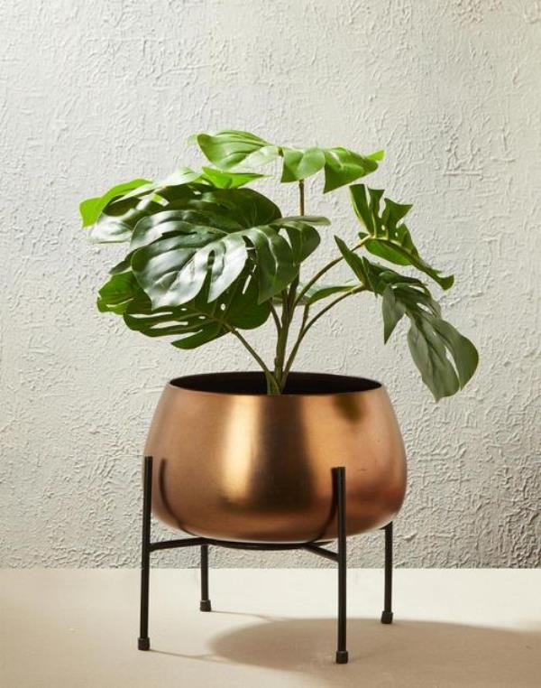 Fabindia Copper Sona Metal Floor Planter With Stand – Elegant Home Décor