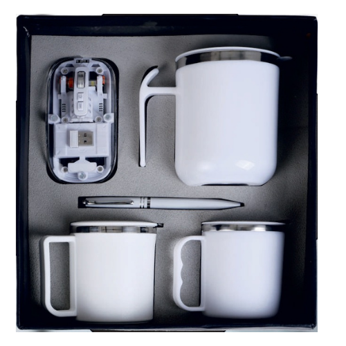 Four-in-One White Desk Essentials Combo Gift Set – Premium Utility for Corporate Gifting. Create a high-impact corporate gifting moment with this elegant Four-in-One Combo Set (White Edition), curated for modern workspaces and everyday productivity. The set includes a beer mug with a lid, two coffee lid mugs, a sleek black metal pen, and a wireless mouse—delivering a perfect mix of desk utility and lifestyle appeal. Ideal for CXO hampers, employee onboarding kits, festive gifting, client appreciation programs, and conference giveaways, this premium set offers excellent custom branding potential, helping brands position themselves as thoughtful, contemporary, and people-first.