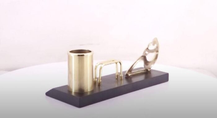 Gold Plated Desk Organizer – Elegant Iron Design with Mother-Son Motif
