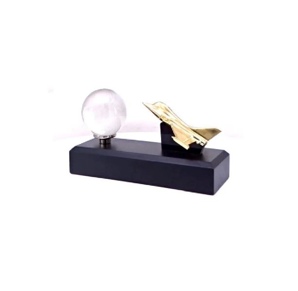 Mounted on a premium wooden base, this piece is perfect as a corporate gift, executive desk décor, or collectible display item. Its luxurious gold finish and crystal accent make it a standout choice for air force enthusiasts, aviation professionals, or business leaders, blending sophistication with symbolic prestige.
