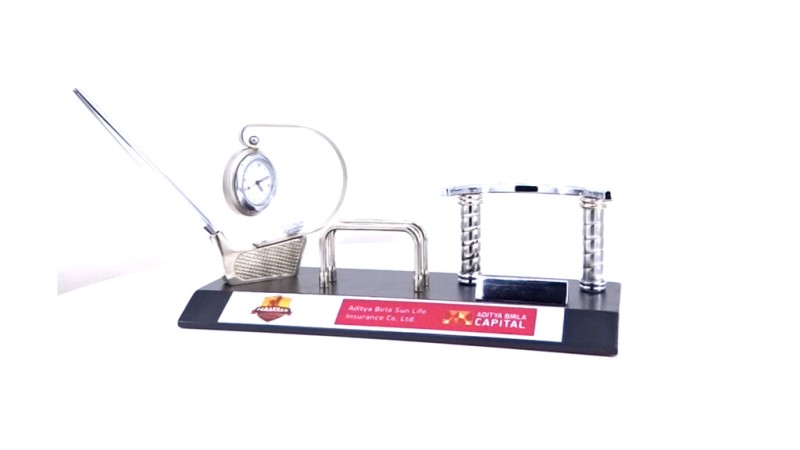 Designed for achievers who play the long game, the Golf Inspired 4 in 1 Desktop brings together functionality, sophistication, and sporting elegance. This premium desk accessory combines a memo pad, pen stand, visiting card holder, and a miniature golf-themed clock, creating a complete and stylish workstation essential.