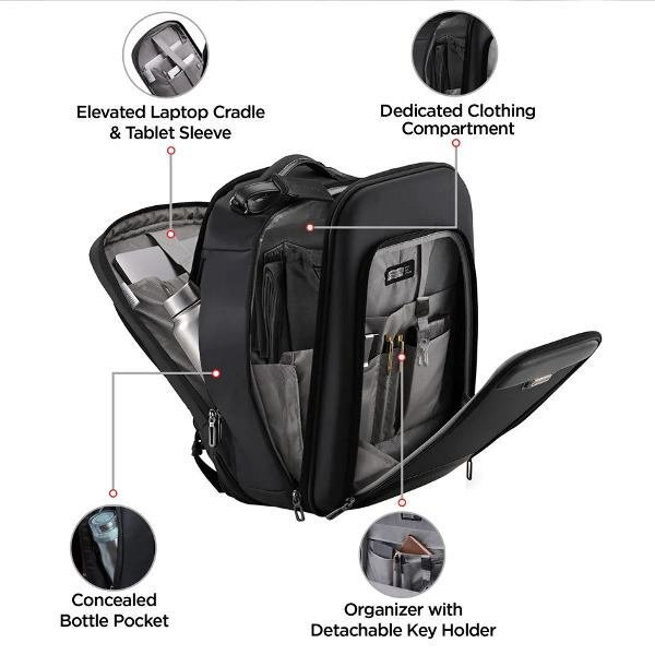 • Premium organizer backpack for clutter-free storage
