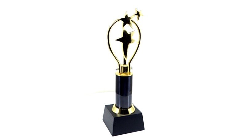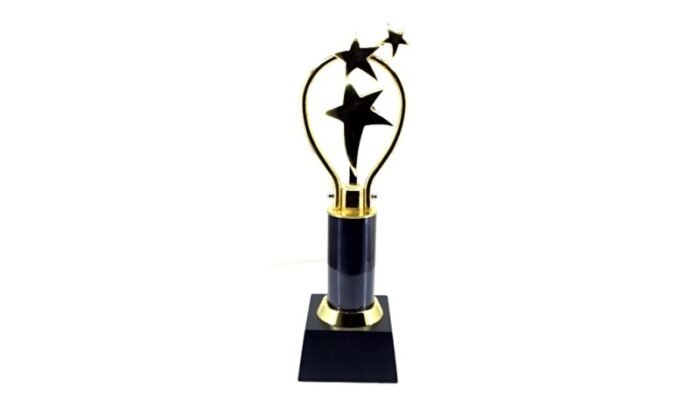 Recognise exceptional dedication and inspire team pride with the Heart Star Trophy – Black & Gold. Featuring three golden stars encased in a heart-shaped chrome arc atop a sleek black body, this trophy symbolises appreciation, leadership, and collaborative success.