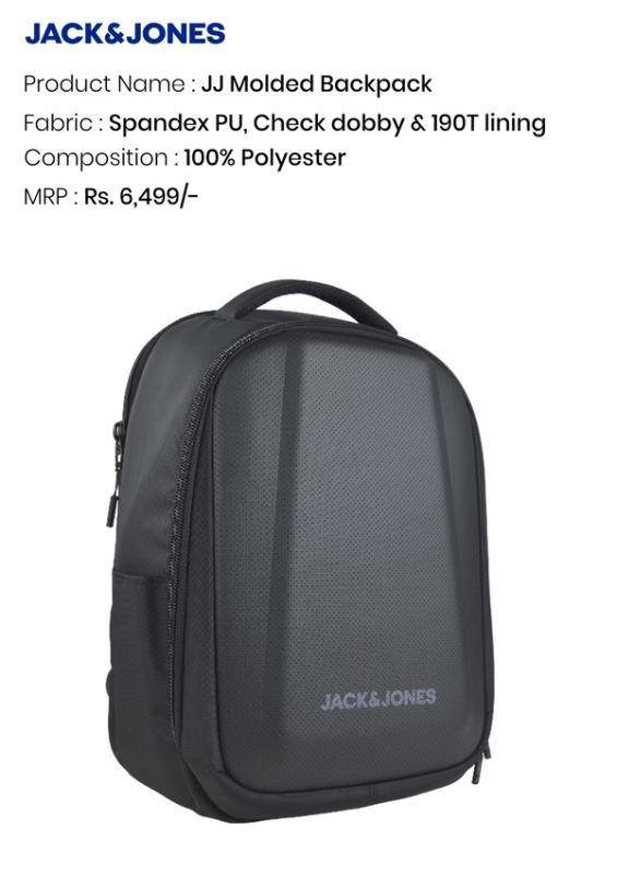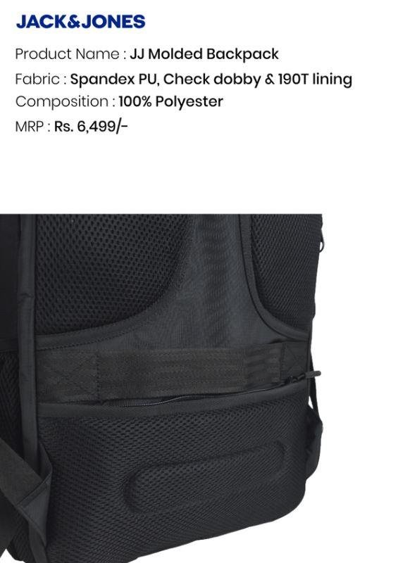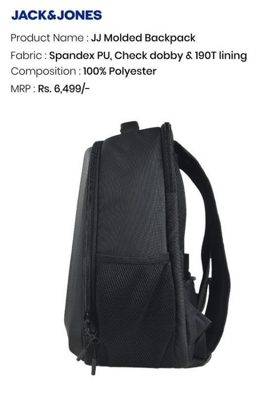 Travel smart and stay organized with the Jack & Jones JJ Molded Backpack, designed for professionals, students, and daily commuters who value security, style, and functionality. Made from 100% polyester with Spandex PUCheck Dobby fabric, and 190T lining, this durable laptop backpack combines premium materials with a modern, sleek design.