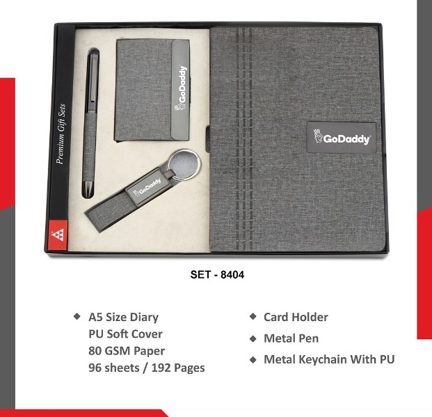 The set includes a sleek pen, sturdy keychain, stylish card holder, and an A5-sized diary, all crafted for everyday professional use. Carefully presented in a premium foam-cut box, the packaging enhances both protection and visual appeal, making it ideal for corporate gifting, employee recognition, client appreciation, and promotional events.