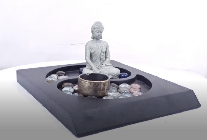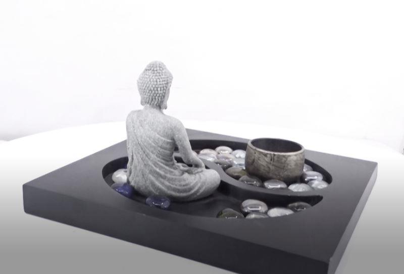 Marble Look Resin Buddha With Yin Yang Wooden Design