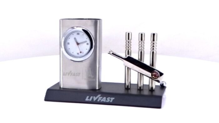 Hit a corporate six with the Metal Cricket Set With Pen Stand – a desk accessory that merges sporting passion with professional branding.