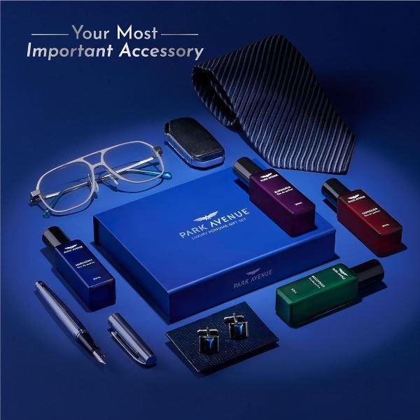 Elevate your style and confidence with the Park Avenue Luxury Perfume Gift Set for Men, a premium fragrance collection designed for the modern corporate man. This exclusive gift set for men features four distinct Eau De Parfums—Euphoria, Conquer, Harmony, and Discoverer—crafted to complement every mood and occasion.