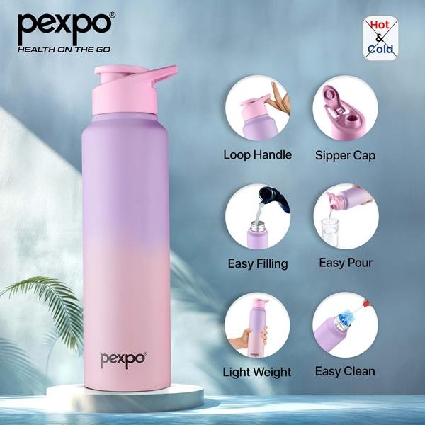 Pexpo Craft Stainless Steel Water Bottle with Sipper Cap (Purple–Pink Ombre, 950 ml)