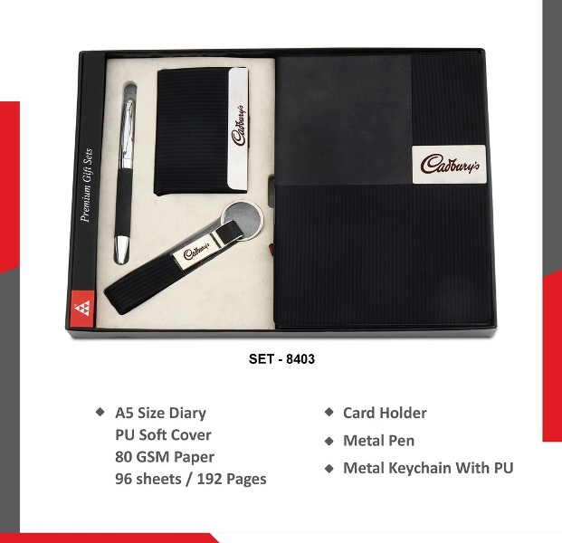 - 4 in 1 corporate gift set with pen, keychain, card holder & diary