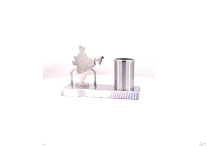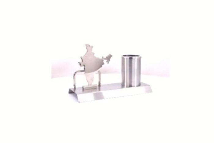 - Metallic India map desk accessory with integrated pen holder