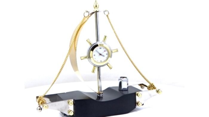 Designed as a multi-utility desk organizer, it features a built-in analog clock for easy time tracking and an integrated pen stand to keep essentials within reach. The detailed ship design, combined with a premium finish, creates a sophisticated décor piece that blends functionality with character.