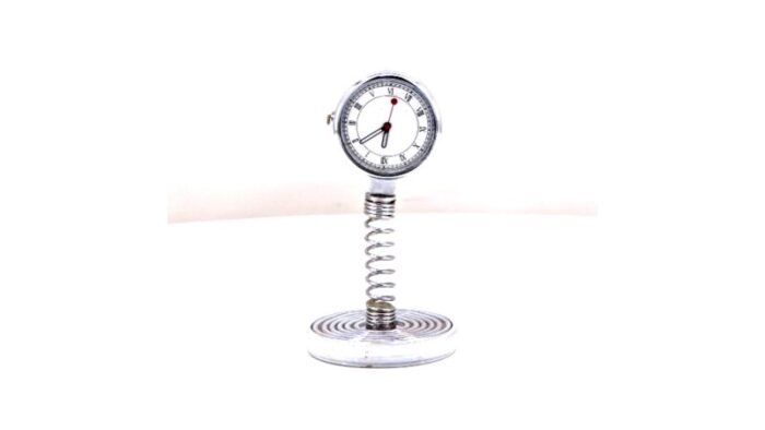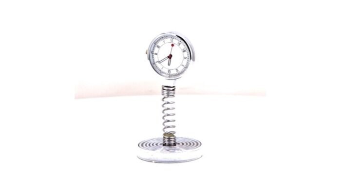 Add playful elegance and functionality to any workspace with the Spring Round Desk Clock, a unique desk accessory where chrome ripples meet a lively spring. The clock gently returns to center after each nudge, bringing a sense of movement and energy to the desk while keeping time and spirits upright.