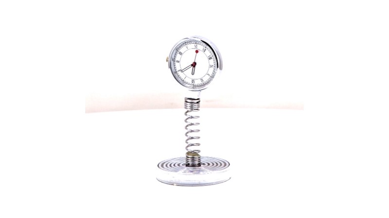 Add playful elegance and functionality to any workspace with the Spring Round Desk Clock, a unique desk accessory where chrome ripples meet a lively spring. The clock gently returns to center after each nudge, bringing a sense of movement and energy to the desk while keeping time and spirits upright. With a branding-friendly base, your company logo can remain prominently visible, making this clock an ideal corporate giftemployee recognition award, or executive desk accessory. Perfect for celebrating achievements, milestones, and professional excellence. Key Features: