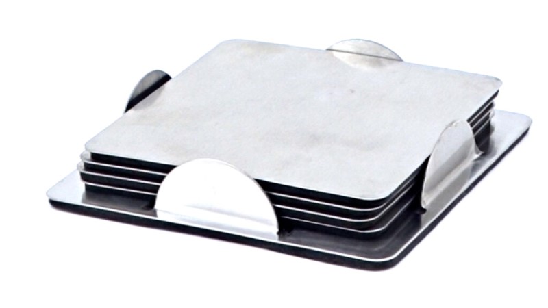 Square Metal Coaster Set – Silver – Corporate Gift & Desk Accessory