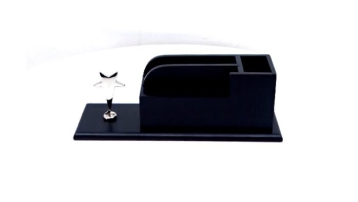 Celebrate excellence with the Star Accolade Desk Organiser, a versatile desk accessory designed to honor top performers and commemorate special milestones. Featuring a gleaming silver star, this multiutility set includes a mobile, a pen, and card slots, keeping desks tidy while highlighting achievements.