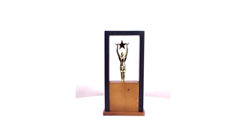 - Rising gold figure holding a star in an open-frame design
