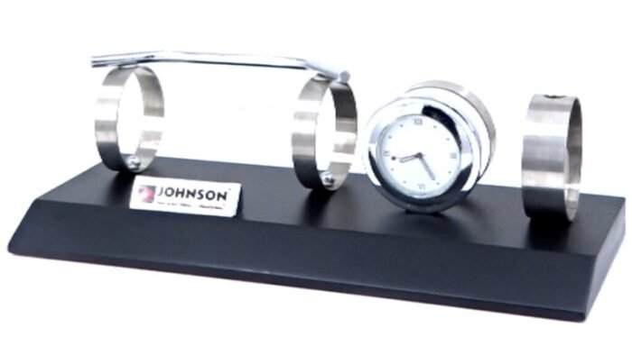 - 4-in-1 functionality: pen stand, mobile holder, card stand, and desk clock