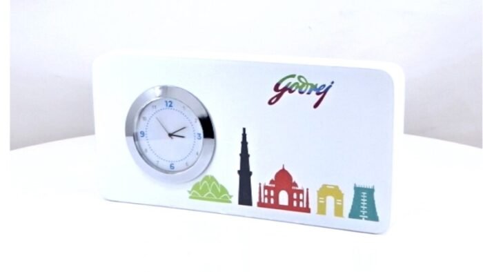 Bring India’s rich heritage to your workspace with the Timeless India Desk Clock. Featuring a sleek white design adorned with colourful silhouettes of iconic Indian landmarks, this desk clock blends modern elegance with cultural pride. Perfect for corporate offices, commemorative gifts, or travel-themed promotions, it adds a meaningful touch to any desk.
