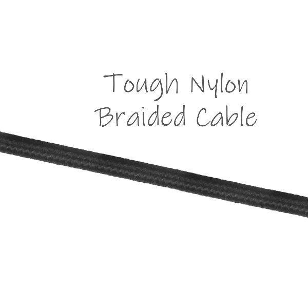 - Tough nylon braided cable for enhanced durability