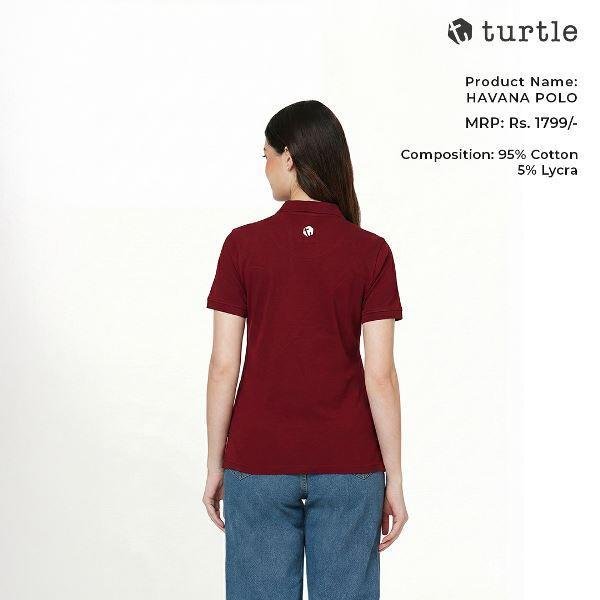 Turtle Havana Polo T-Shirt for Women – Premium Cotton Lycra Maroon Polo with Pique Fabric