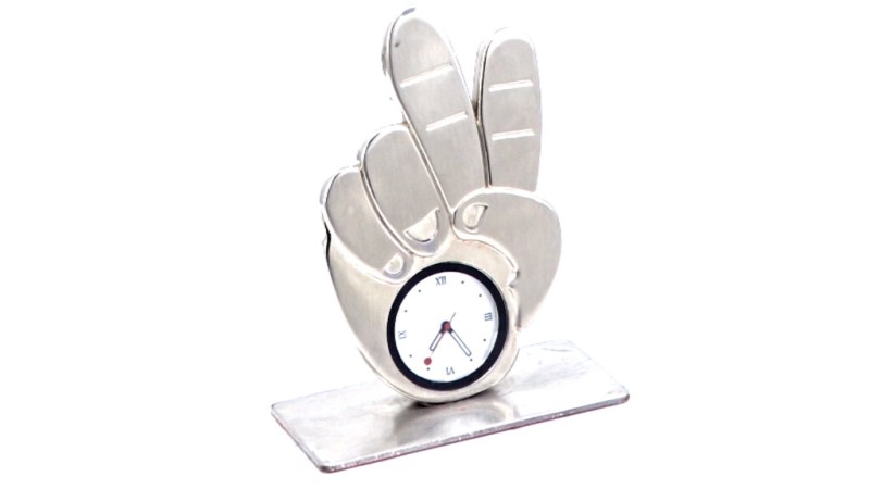 Celebrate success, confidence, and achievement with the Victory Hand Table Clock, a striking desk accessory featuring a silver-finished hand design. Combining eye-catching aesthetics with practical timekeeping, it is perfect for award desks, employee recognition, and motivational gifting.