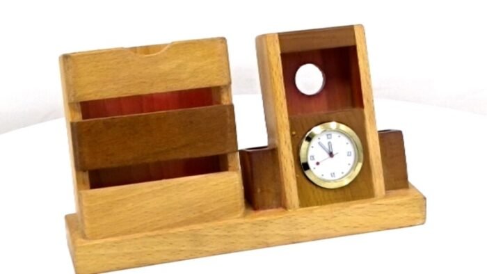 Stay punctual and organized with the Wooden Perpetual Calendar with Clock – a sophisticated and functional desk accessory for any professional setting.