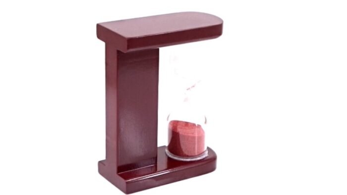 - Elegant wooden design with a glass chamber for sand flow