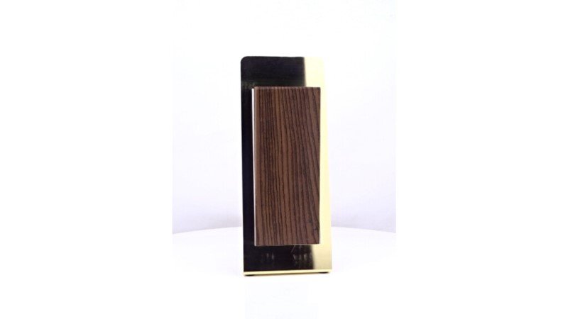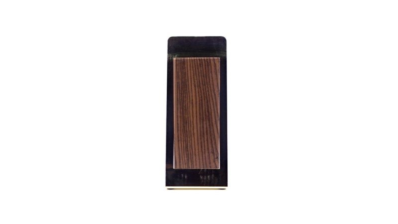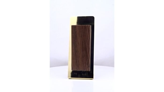 Celebrate excellence with this Wooden Trophy, a modern and sleek vertical panel combining natural wood grain with a striking golden metal backplate. Its contemporary design makes it perfect for innovation awards, design recognition, and strategy achievement trophies.